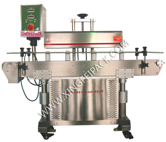 电磁感应铝箔封口机是利用电磁感应的原理,使铝箔面产生涡流瞬时发热,将铝箔紧密地粘合在瓶口上,达到气密封口的目的。